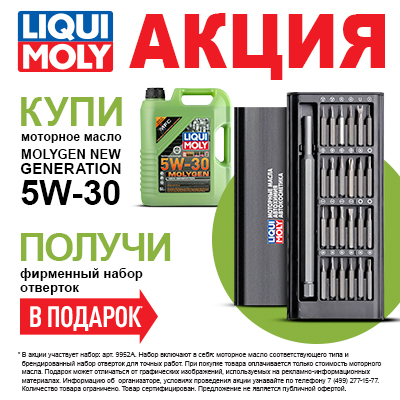 При покупке 5-ти литровой канистры моторного масла Molygen New Generation 5W-30 (арт. 9952А) -  фирменный набор отверток  в подарок!